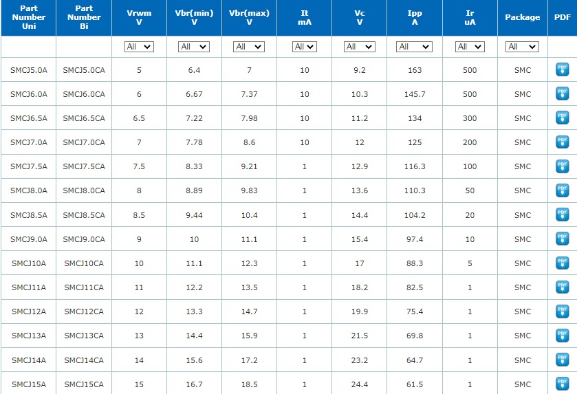 TVS瞬态抑制二极管 SMCJ